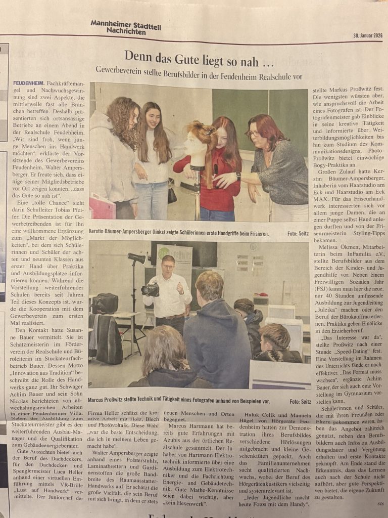Gewerbeverein stellt Berufsbilder in der Feudenheim Realschule vor.