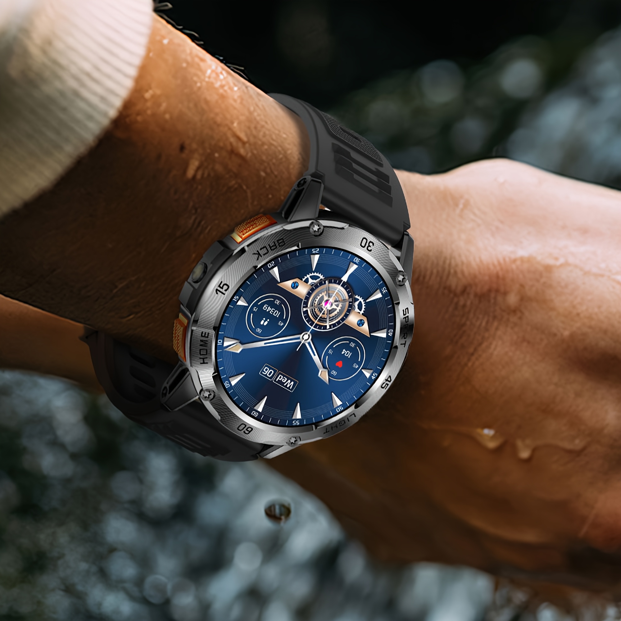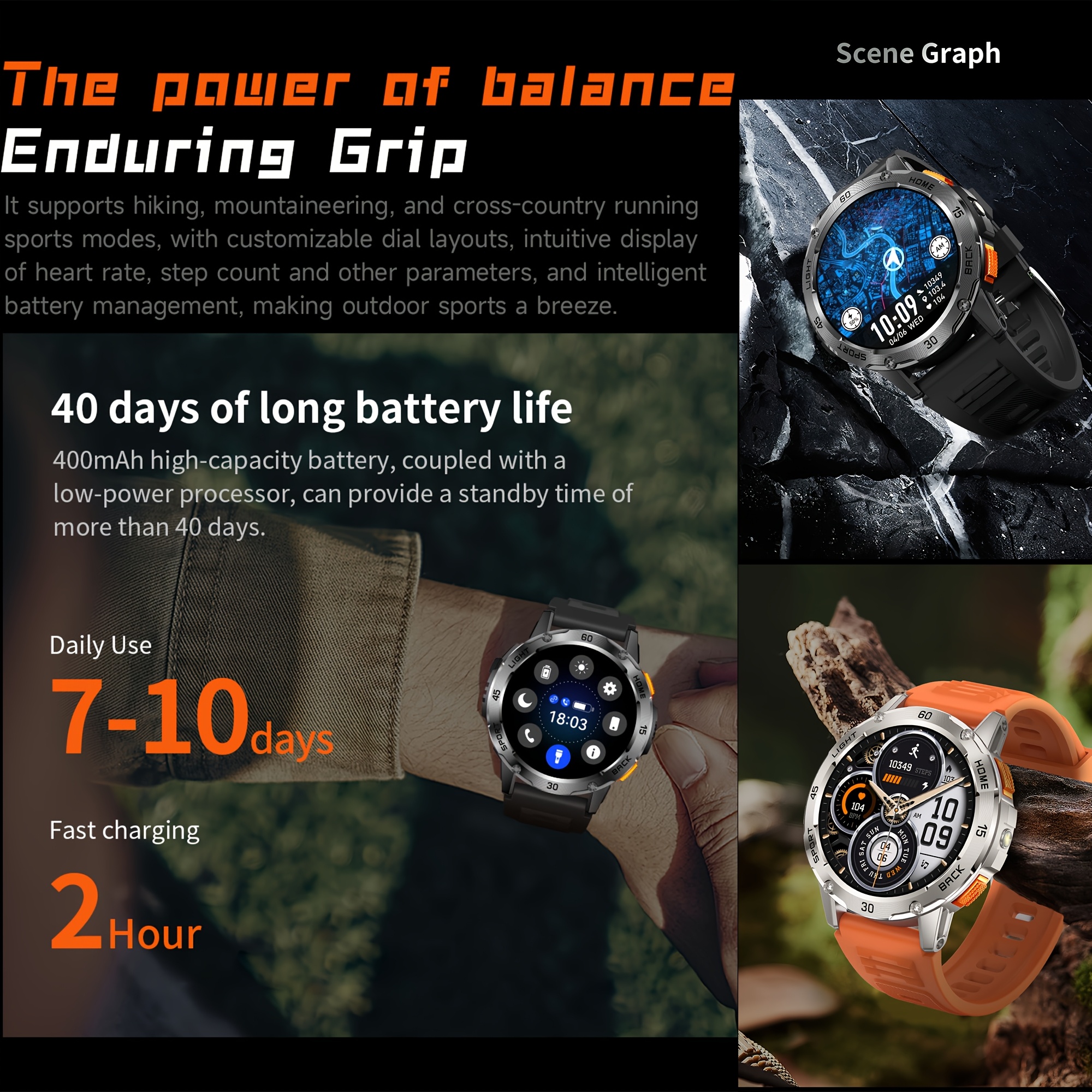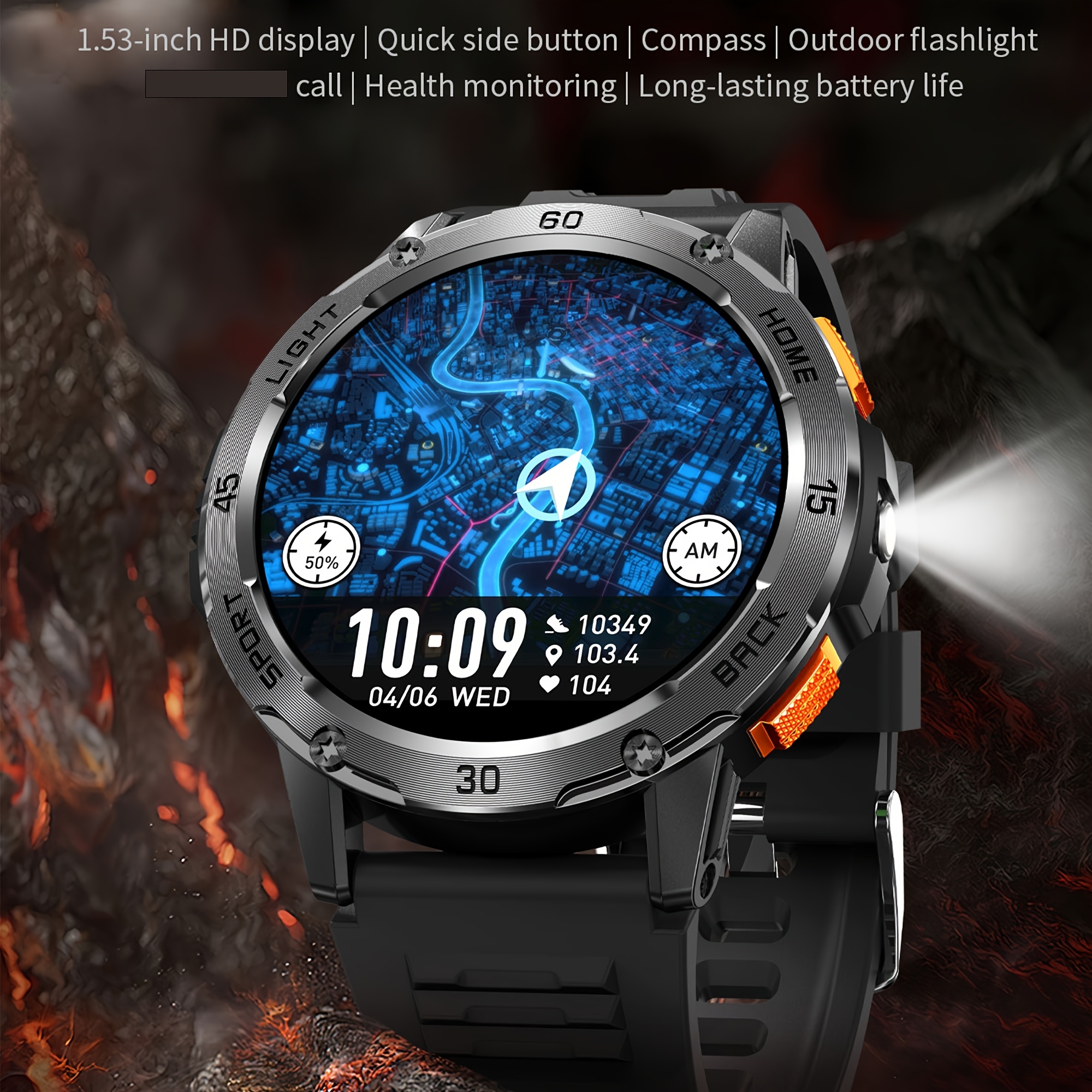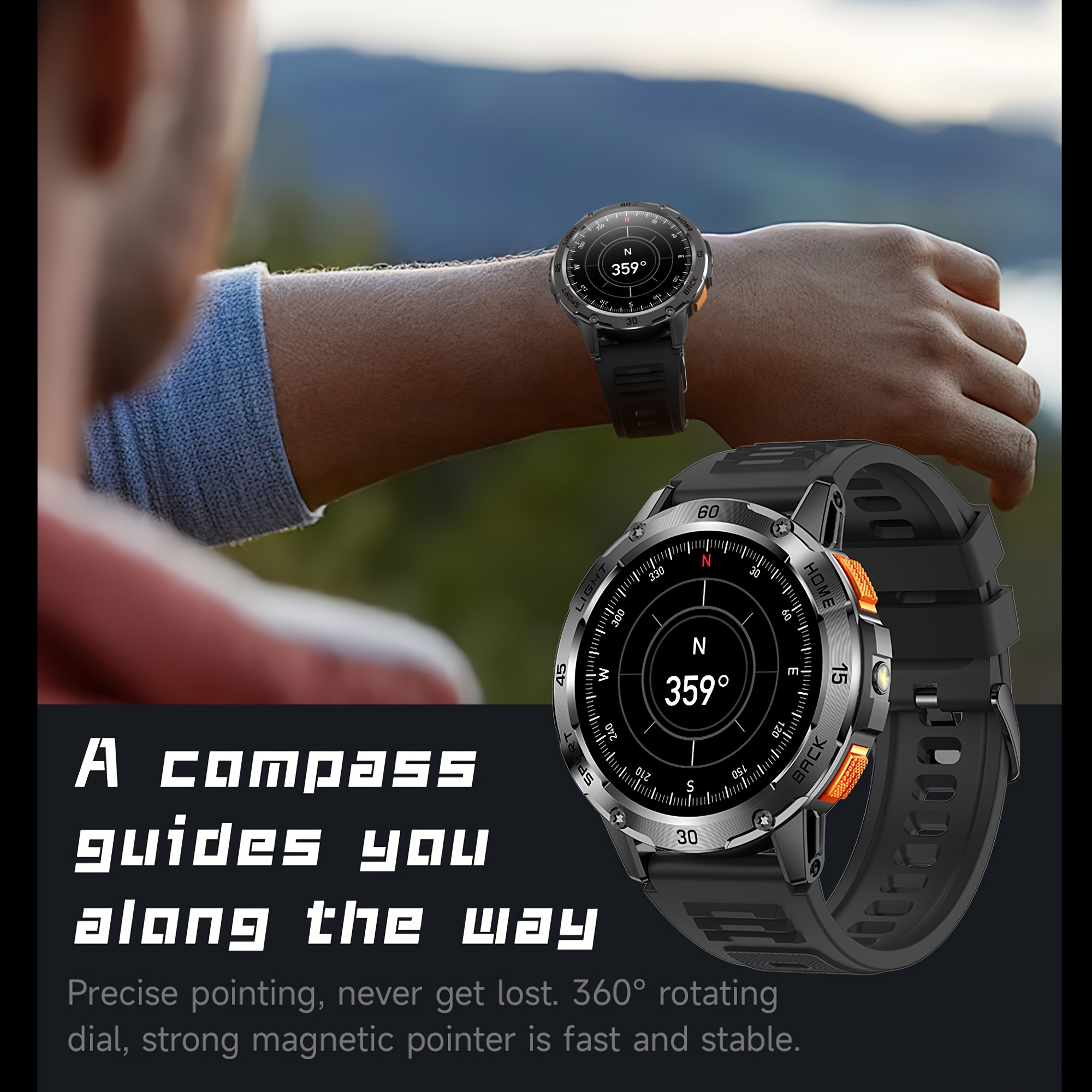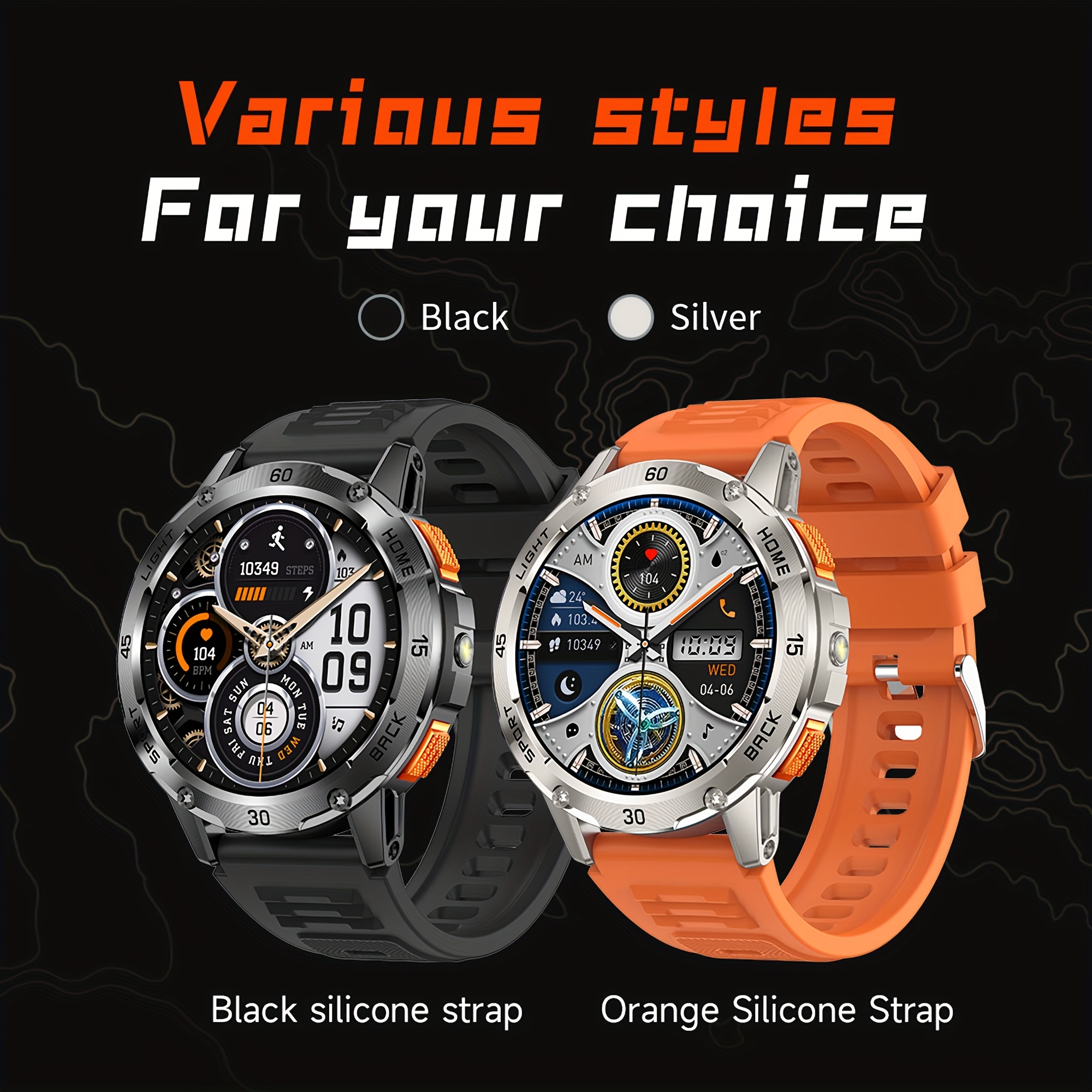 IP68 Smartwatch für Männer, Anrufe annehmen/tätigen, 5,11 cm Fitness-Smartwatch mit LED-Beleuchtung Rufintegration, kabellose Android & iPhone Kompatibilität, Multifunktionsuhr mit Sportmodi inkl. 1 Edelstahlarmband, 1 zufälligem Kunstlederband sowie 1 Silikonband
